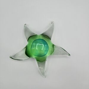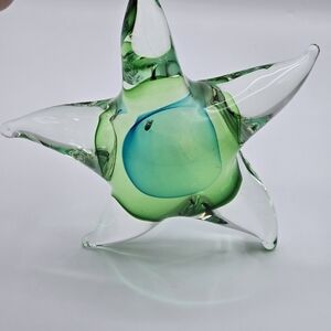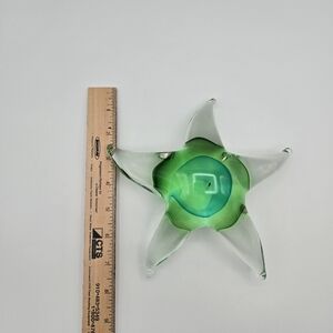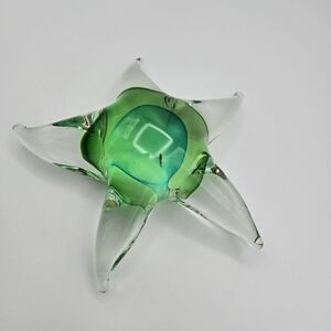 Hand Blown Starfish Glass Paperweight Green Clear Thick Heavy 2.6lb