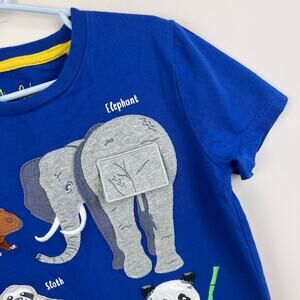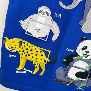 Mini Boden Educational Flap Tee Shirt Brilliant Blue Animals. Boy or girl size 8-9 years. The iconic, hard to find poop shirt! Short sleeve top with applique animals. Super soft! Lift the flaps to see each animal's poo and learn a fun fact! Excellent condition; worn once or twice. We've owned in several sizes and this is always a hit with the other kids at school! Sibling match available separately (7-8).