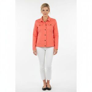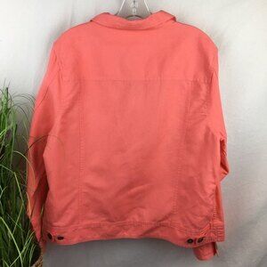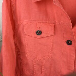 LL Bean Linen Blend Coral Orange Button Up Shirt Trucker Jacket L