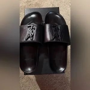 YSL black slide sandals. Size 7.5. Barely used in excellent condition with original dust bag and box. Perfect for casual outings, these sandals offer both style and comfort.