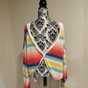 In excellent condition sweater from bucket list. Open back twisted design. Vibrant striped pattern from smoke free home. No size tag, fits large.