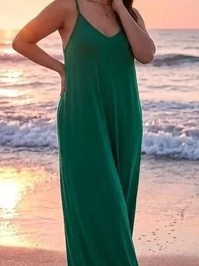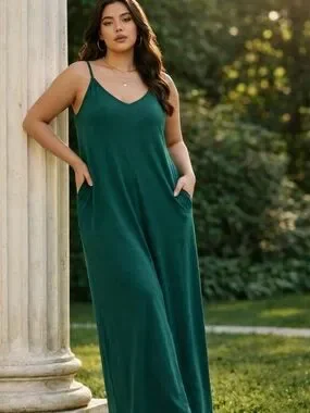 Zenana Premium Green Maxi Slip Dress 1X Minimalist Stretch Lounge Capsule