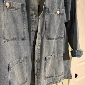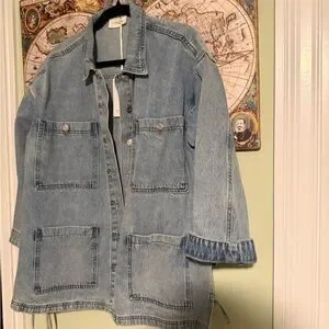 Super cute oversized jean chore jacket with adorable side ties. Brand new with tags
