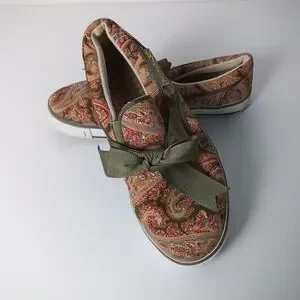 Preppy Paisley Slip-On Sneakers with Olive Bow Women's Size 7