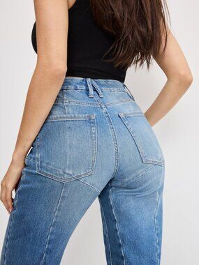 Good American Good Icon Straight Jeans Women’s 6/28 Raw Distressed Step Hem
