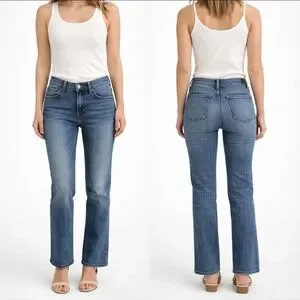 Kut from the Kloth light wash jeans with a flattering low rise and slight bootcut flare. Soft stretch denim that hugs through the hips and relaxes at the leg for that effortless Y2K silhouette.