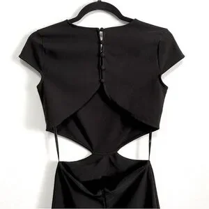 Lulu’s Conversation Piece Black Cap Sleeves Backless Maxi Dress