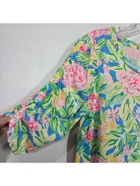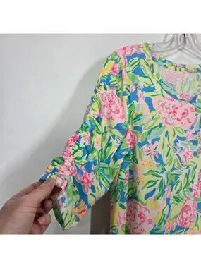 Lilly Pulitzer Dress Large Belden Elbow Sleeve Grove Garden Beachy Tropical