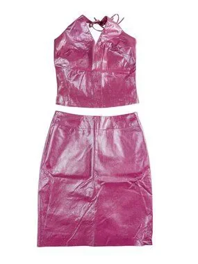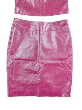 Rare Vintage Y2K Express Hot Pink 100% Leather Halter Top Skirt Set Sz XS Fest