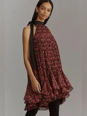 Anthropologie Tie Halter Ruffled Floral Mini Dress