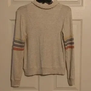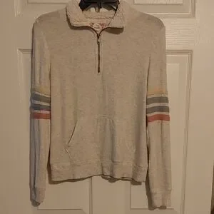 Pink Republic Cream Sherpa Pullover Sz XS Striped Elbow Detail Soft 3/4 Zip Up