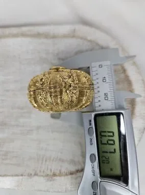 Condition: good vintage condition, with light wear consistent with age. The hinge functions well, closes tight, and the detailing remains crisp and eye-catching. (Note: perfume contents are not present or usable but there is still a leftover smell)