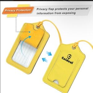 Luggage Tags Leather Printed for Suitcase, Coideal Travel Bag Name Tag with Magnetic Privacy Flap and Elastic String for Women Men (Yellow)