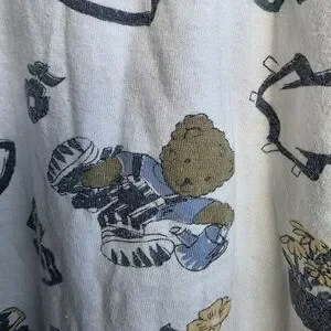 Teddy Bear Patterned White and Blue Two-Piece Set Pajamas Medium