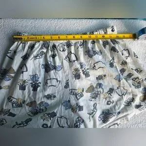 Stylish two-piece set with a playful pattern. Features a mix of white and blue colors.