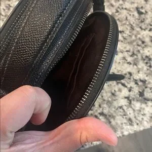 Coach Black Leather Cat Motif Round Crossbody with Yellow Eye Accents