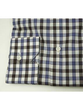 Isaia White Purple Brown Plaid Long Sleeve Cotton Dress Shirt 15.5/39 NEW