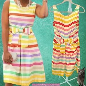 kate spade | Jillian | Lined Silk Rainbow Stripe Dress w Front Pockets & Bow