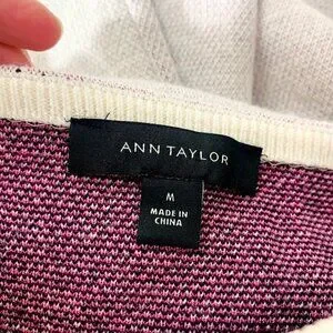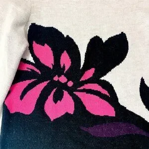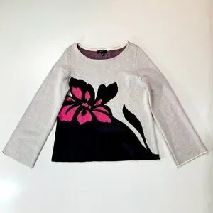 Ann Taylor Sweater Knit Floral Wool Bell Sleeve Black Barbie Pink Medium Grey