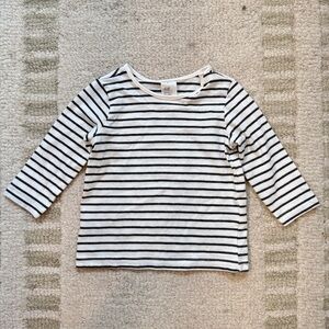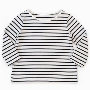 Classic black and white striped long sleeve shirt for babies size 4–6 months (EUR 68). Soft cotton fabric with envelope neckline makes it easy to dress. Great everyday staple.
