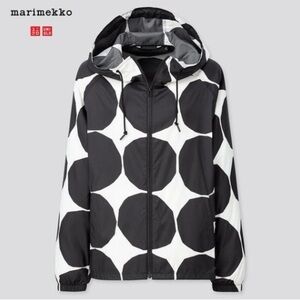 MARIMEKKO x UNIQLO Black White Packable Hoodie Rain Jacket Polka Dot Sz S