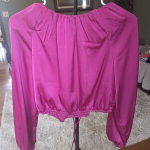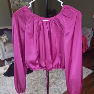 Rachel Zoe Hot Pink Satin Off-Shoulder Drawstring Crop Top