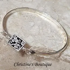 Onyx Gemstone & 925 Sterling Silver Filigree Reversible Bracelet