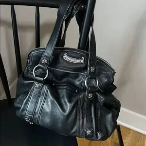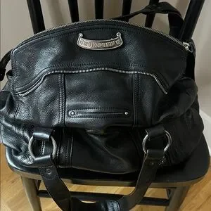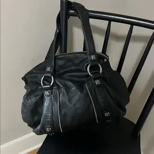 B. Makowsky Black Pebbled Leather Large Slouchy Moto Hobo Bag