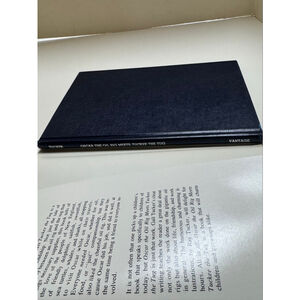 The hardcover book itself is dark blue. Visible imperfections include some wear and creasing on the dust jacket, particularly along the edges and spine, and a tear on the top right corner of the front flap.