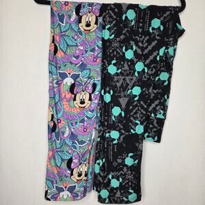 LOT of 2 Disney LuLaRoe Minnie Mouse Print Leggings Tall Curvy TC Size 12-18