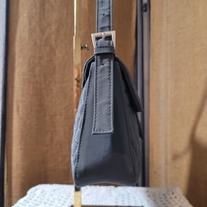 Stylish quilted shoulder bag in black. Features a flap closure and adjustable shoulder strap for versatile wear. Smooth exterior with subtle quilted stitching for a refined look. Perfect for daily use and evening outings.