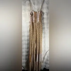 Ces Femme Cream and Tan Patterned Jumpsuit