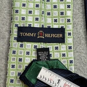 Tommy Hilfiger Green Geometric 100% Silk Tie – Classic Men's Designer Necktie