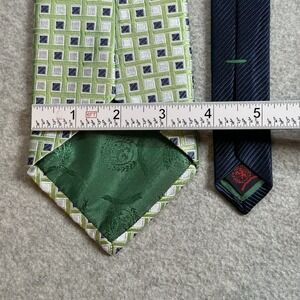 The Tommy Hilfiger Green Geometric 100% Silk Tie is a classic men's designer necktie featuring a retro geometric pattern in a rich green color. Made from woven silk fabric, this vintage-inspired tie has a wide width of 3.6 inches and a classic length of 57 inches, perfect for adding a touch of American preppy style to any outfit. With its abstract design and high-quality construction, this tie is sure to make a statement and elevate your look with its timeless appeal and designer brand.