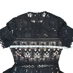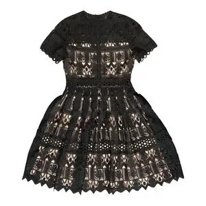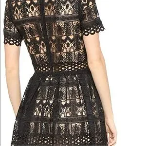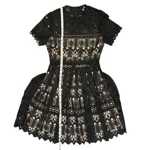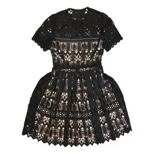 Alexis Lula Guipure Lace Eyelet Short Sleeve Mini Dress Black Women’s Medium