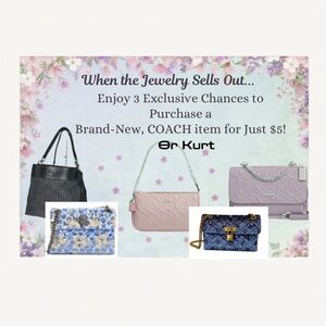 WHEN THE JEWELRY SELLS OUT, 3 chances will be given to purchase a NEW KURT GEIGER OR COACH FOR $5!!!