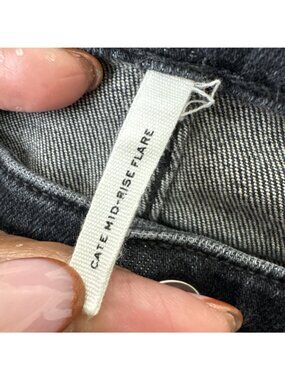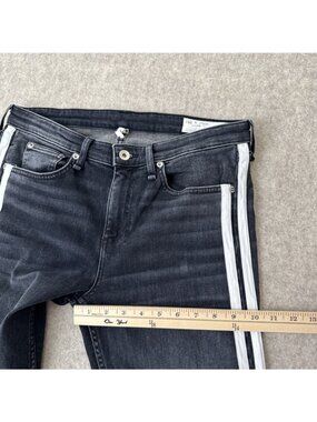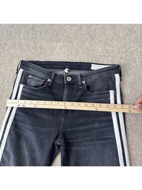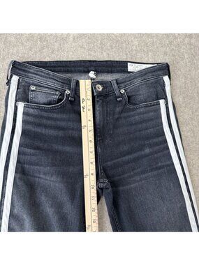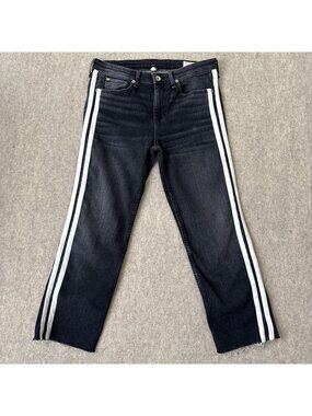 Rag Bone Cate Flare Jeans Womens 29 Charcoal Stripe Mid Rise Ankle Cropped Raw