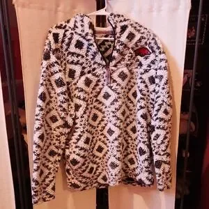 Pressbox Black and White Diamond Sherpa Zip Pullover