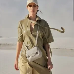 Worn as a crossbody or on the shoulder, or carried in the hand.