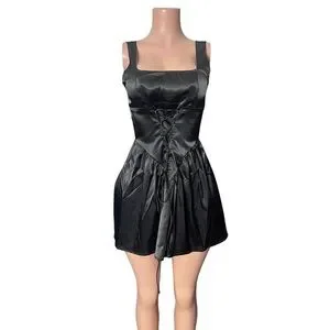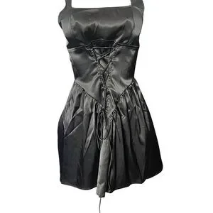 This elegant black satin dress is perfect for any occasion. Its sleek design and luxurious fabric offer a sophisticated look. Ideal for evening events or a night out.