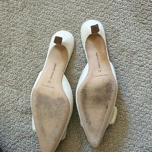 Manolo Blahnik Cream Suede Pointed-Toe Mules with Buckle