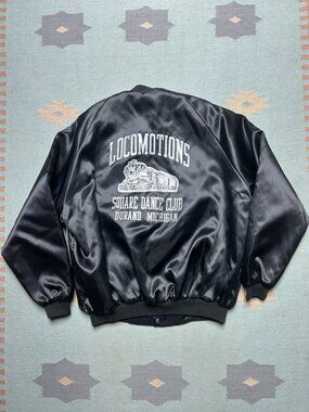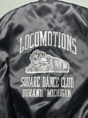 Vintage satin bomber jacket locomotions square dance club Durand Michigan large