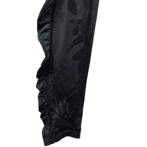 Stylish black leggings with floral design. Ideal for workouts or casual wear.