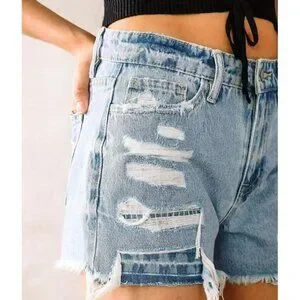 Flying monkey Womens Destruct Denim High Rise Frayed Hem Shorts Size 25,27