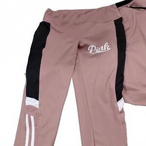 PINK Victoria's Secret Mauve Pink & Black Track Jogger Set, Zipper doesnt work..