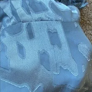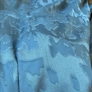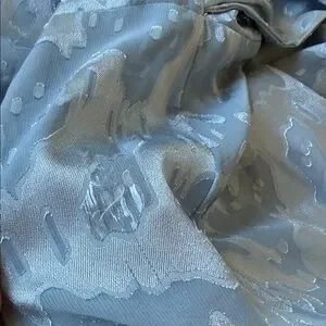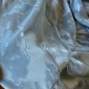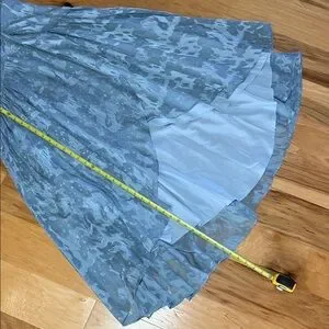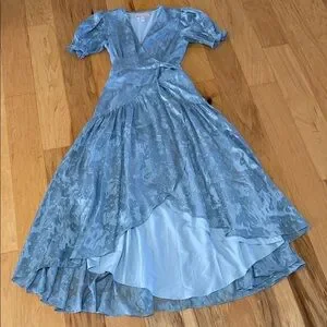 Elegant blue maxi dress with a V-neck and romantic puff sleeves. Lightweight fabric with a subtle jacquard pattern for added texture. Flattering waist and flowing skirt create graceful movement. Perfect for daytime events or special occasions.