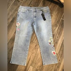 NWT! Lee Light Blue Straight-Leg Jeans with Floral Embroidery
