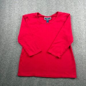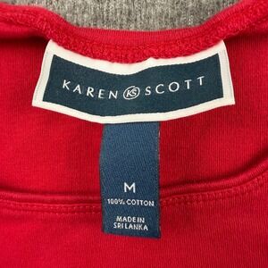 Karen Scott Womens Red 100% Cotton 3/4 Sleeve Scoop Neck Top Size M