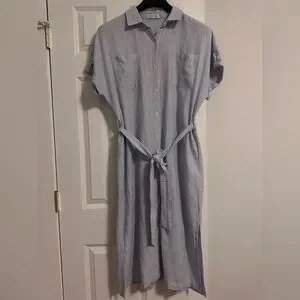JustFab Linen Shirt Dress size XXL fits XL fits XL Blue White Stripes