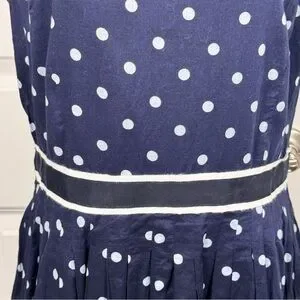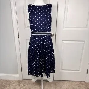 Talbots Navy White Polka Dot Fit Flare Work Dress Cotton Lined Size 14 Classic